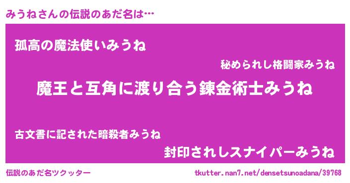 | ヒーロー風カッコイイあだ名 | 『愛の使者みうね』『黄金騎士ミウ』 |