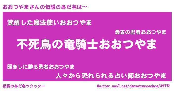 | 意味不明あだ名 | 『住所不定無職おおつやま(13歳)』 |