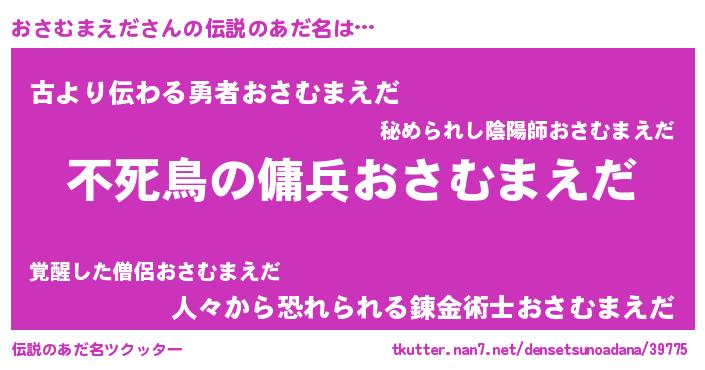 | 男性向けラノベタイトル風あだ名 | 『転生したらおさむまえだだった件』 |