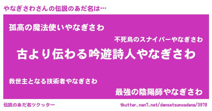 | 意味不明あだ名 | 『永久保存やなぎさわ』 |