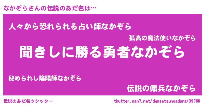 | 男性向けラノベタイトル風あだ名 | 『なかぞらという概念が存在しない退屈な世界 』 |
