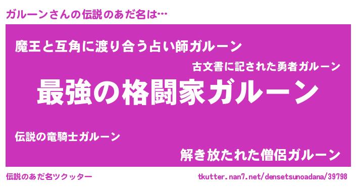 | ヒーロー風カッコイイあだ名 | 『ウルトラガルーンマン』『仮面ガルダー』 |