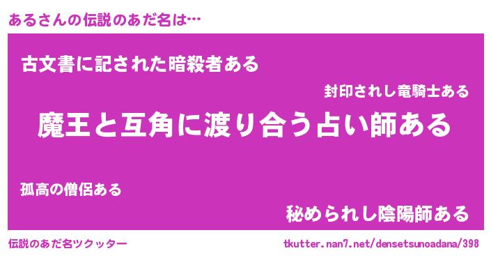 | ヒーロー風カッコイイあだ名 | 『慈愛の使者ある』『ネオアル』 |