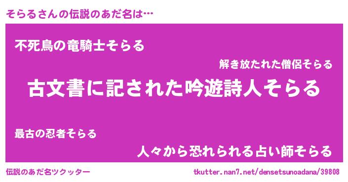 | 意味不明あだ名 | 『ニラ科そらる属』『自称そらる』 |
