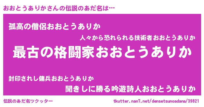 | ヒーロー風カッコイイあだ名 | 『ウルトラおおとうありかマン』 |
