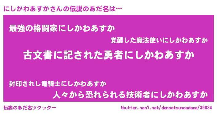 | 意味不明あだ名 | 『永久保存にしかわあすか』 |