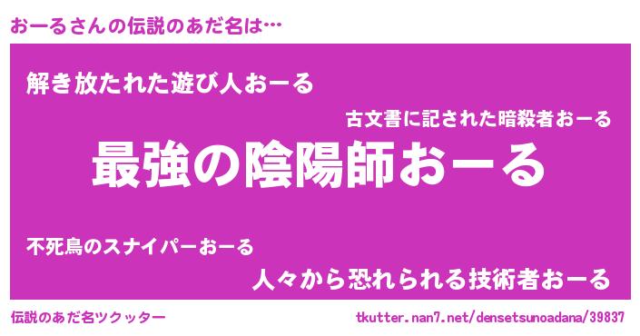 | ヒーロー風カッコイイあだ名 | 『ウルトラおーるマン』『黄金騎士オー』 |