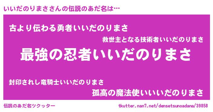 | 意味不明あだ名 | 『住所不定無職いいだのりまさ(14歳)』 |