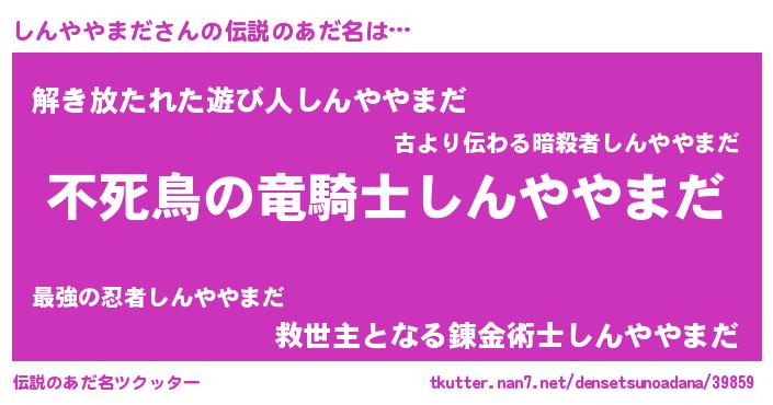 | 意味不明あだ名 | 『自称しんややまだ』 |