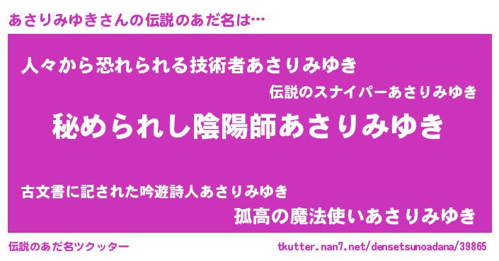 | ファンタジー風あだ名 | 『エターナルアサリミユキー』 |
