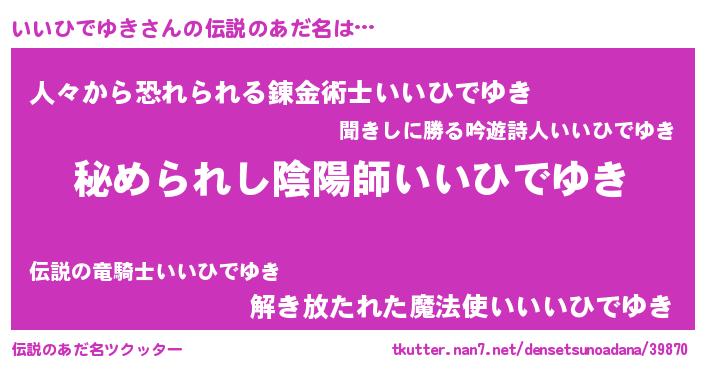 | 意味不明あだ名 | 『住所不定無職いいひでゆき(84歳)』 |