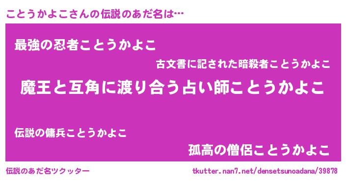 | 女子向けラノベタイトル風あだ名 | 『ことうかよこ恋絵巻』 |