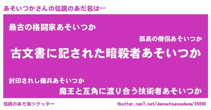 | 意味不明あだ名 | 『永久保存あそいつか』『自称あそいつか』 |