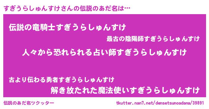 | ヒーロー風カッコイイあだ名 | 『正義の使者すぎうらしゅんすけ』 |