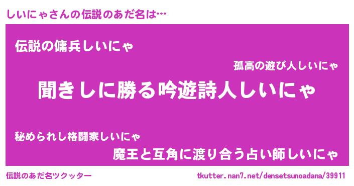 | 男性向けラノベタイトル風あだ名 | 『しいにゃという概念が存在しない退屈な世界 』 |
