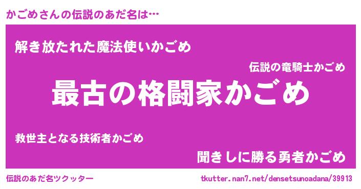 | 意味不明あだ名 | 『かごめフォーエバー』『自称かごめ』 |