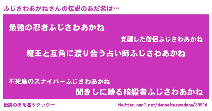 | 意味不明あだ名 | 『眠気覚ましガムふじさわあかね味』 |