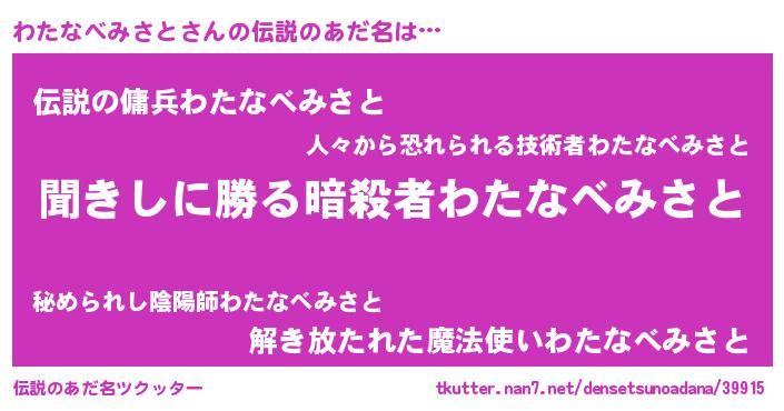| ヒーロー風カッコイイあだ名 | 『ネオワタナベミサト』『仮面ワタダー』 |