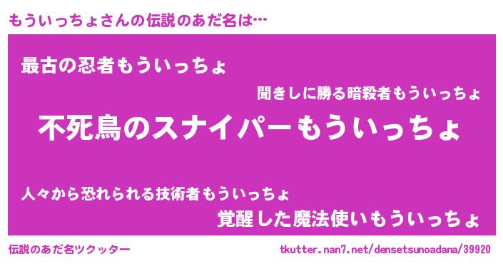 | 意味不明あだ名 | 『自称もういっちょ』 |