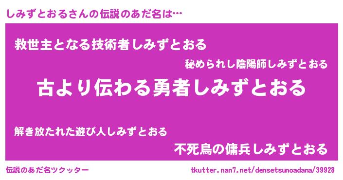 | 意味不明あだ名 | 『永久保存しみずとおる』 |