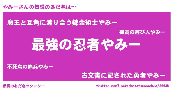 | 意味不明あだ名 | 『ヨモギ科やみー属』『自称やみー』 |