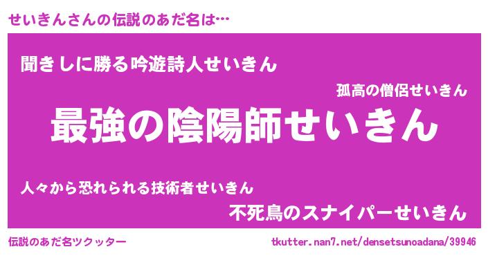 | ファンタジー風あだ名 | 『エターナルセイキンー』『ゼセイトゥ』 |