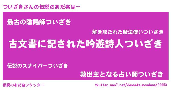 | ヒーロー風カッコイイあだ名 | 『ネオツイザキ』『ウルトラついざきマン』 |