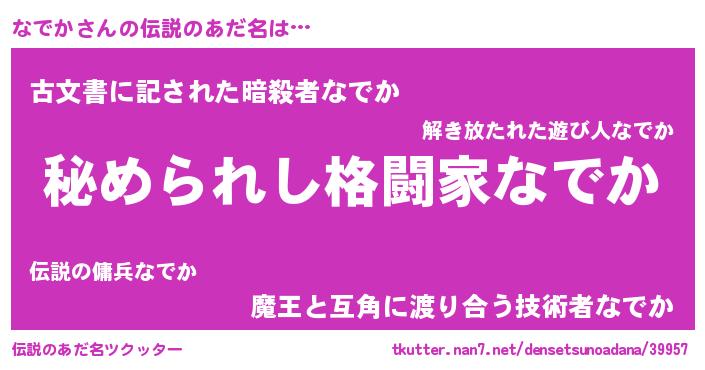 | 男性向けラノベタイトル風あだ名 | 『ナデカスレイヤー』 |