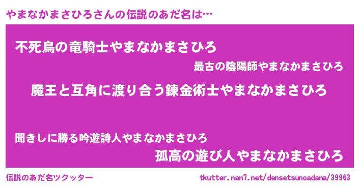 | ヒーロー風カッコイイあだ名 | 『愛の使者やまなかまさひろ』 |