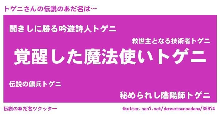 | 意味不明あだ名 | 『とにかく怪しいトゲニ』『自称トゲニ』 |