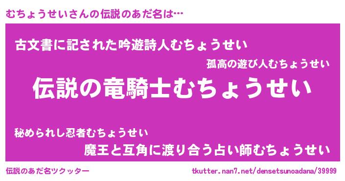 | ヒーロー風カッコイイあだ名 | 『スーパームチョウセイ』『仮面ムチダー』 |