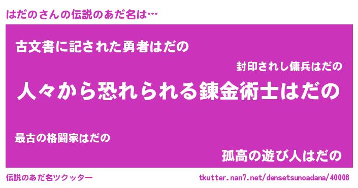 | ヒーロー風カッコイイあだ名 | 『正義の使者はだの』『ネオハダノ』 |