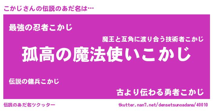 | 男性向けラノベタイトル風あだ名 | 『緋弾のコカジ』『はたらくこかじさま!』 |
