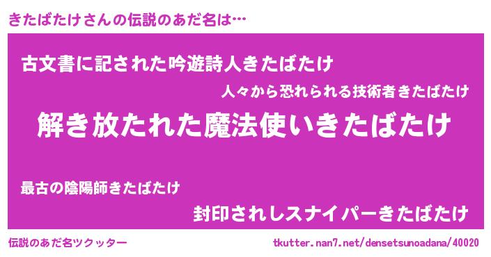 | 意味不明あだ名 | 『住所不定無職きたばたけ(11歳)』 |