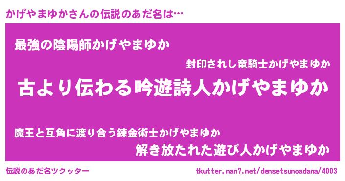 | 意味不明あだ名 | 『永久保存かげやまゆか』 |