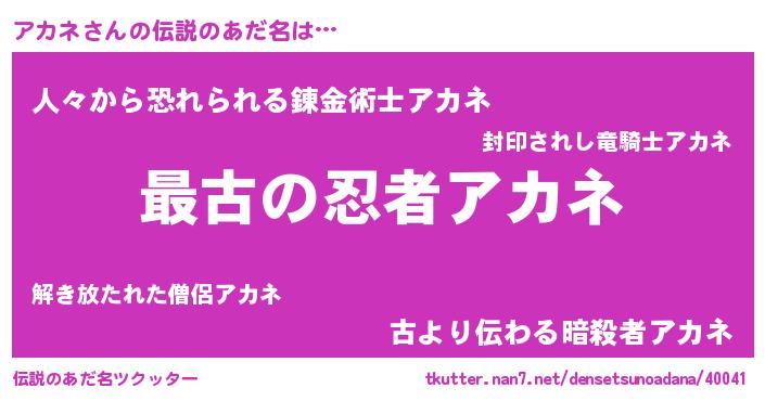 | 意味不明あだ名 | 『自称アカネ』『アカネフォーエバー』 |