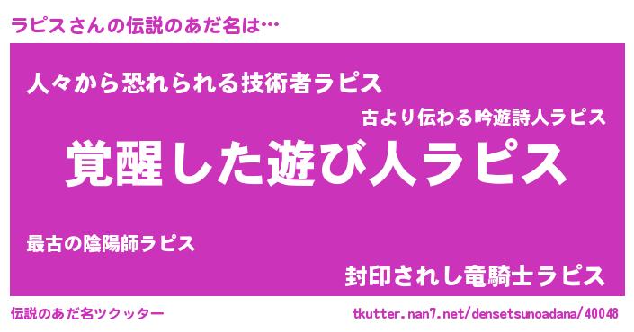 | 意味不明あだ名 | 『住所不定無職ラピス(85歳)』 |