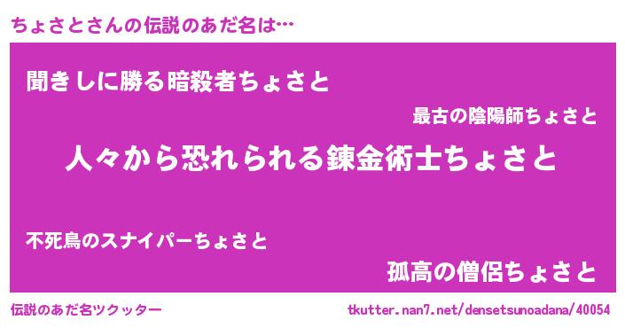 | ヒーロー風カッコイイあだ名 | 『正義の使者ちょさと』『ネオチョサト』 |