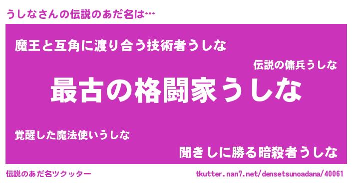 | 料理風あだ名 | 『ヘルシー!うしなのピリ辛酒蒸し!』 |