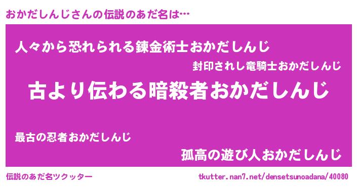 | 意味不明あだ名 | 『住所不定無職おかだしんじ(56歳)』 |