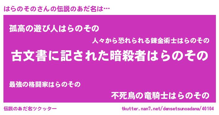 | ヒーロー風カッコイイあだ名 | 『ネオハラノソノ』『暗黒騎士ハラ』 |