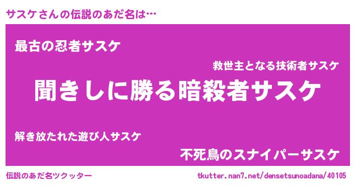 | 意味不明あだ名 | 『永久保存サスケ』『サスケフォーエバー』 |