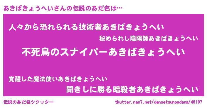 | ヒーロー風カッコイイあだ名 | 『スーパーアキバキョウヘイ』 |