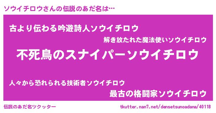 | ヒーロー風カッコイイあだ名 | 『スーパーソウイチロウ』『仮面ソウダー』 |