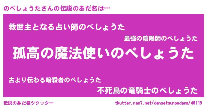 | 胡散臭い通販商品みたいなあだ名 | 『信頼と実績のサプリメント…その名も「のべしょうた」』 |
