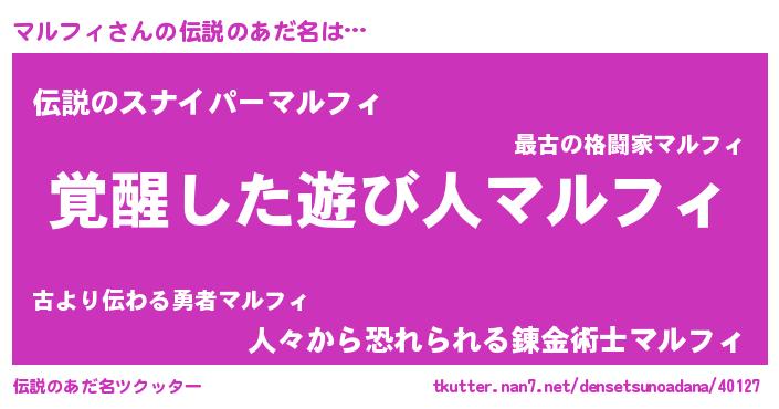 | 男性向けラノベタイトル風あだ名 | 『マルフィの嫁は女の子じゃないと思った?』 |