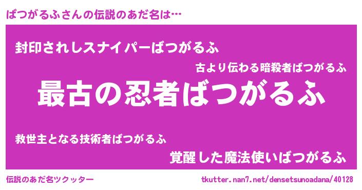 | ファンタジー風あだ名 | 『エターナルバツガルフー』『バツフェル』 |