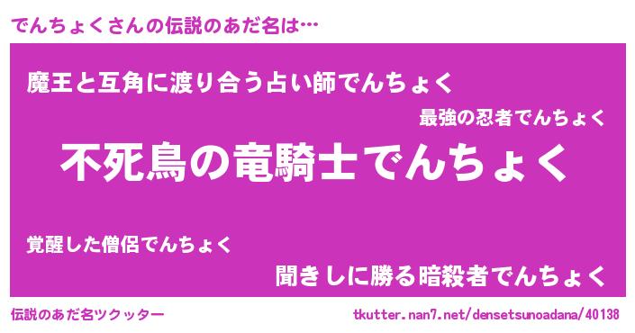 | 女子向けラノベタイトル風あだ名 | 『でんちょく姫と円卓の騎士』 |