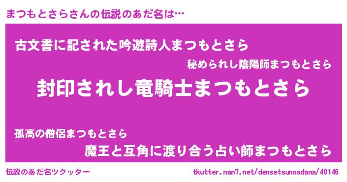 | 男性向けラノベタイトル風あだ名 | 『マツモトサラアートオンライン』 |