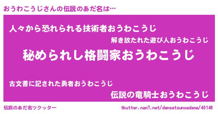 | 意味不明あだ名 | 『おうわこうじフォーエバー』 |